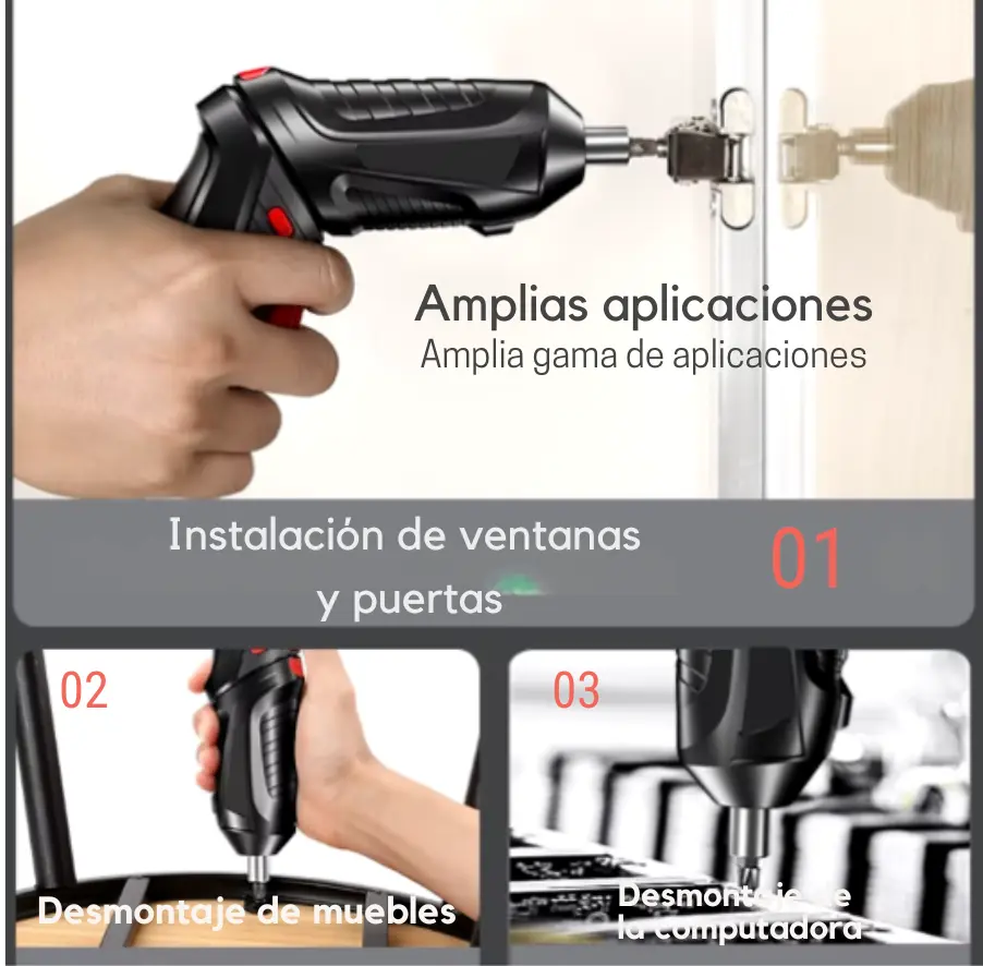 Sumá hoy este Destornillador Eléctrico Inalámbrico con Kit Completo y resolvé cualquier tarea con facilidad y precisión.