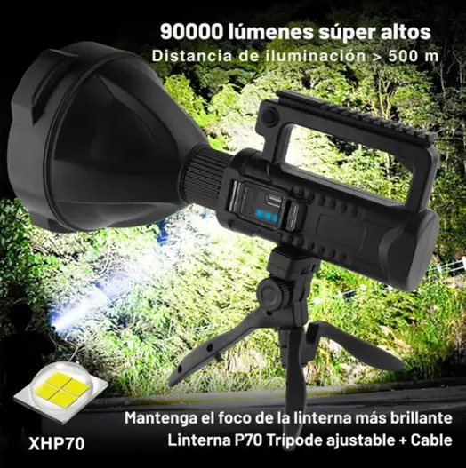 Incluye trípode, lo que permite utilizarla de forma estable y manos libres, ampliando sus posibilidades de uso 🔧📐. Además, es recargable por USB, una solución práctica y moderna que evita el uso de pilas, facilitando su carga en cualquier momento y lugar 🔌🔋.